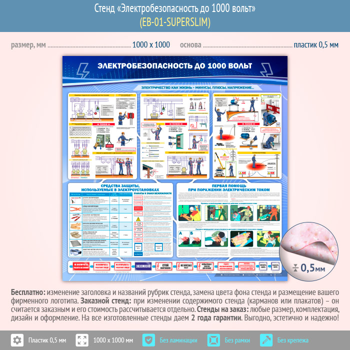 Стенд «Электробезопасность до 1000 вольт» (EB-01-SUPERSLIM) в Обнинске купить
