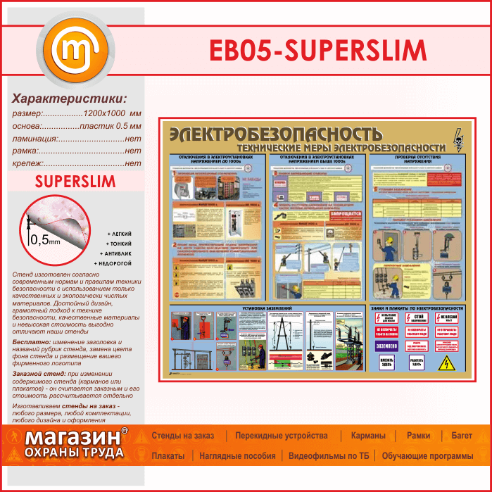 Стенд «Электробезопасность. Технические меры электробезопасности» (EB-05-SUPERSLIM) в Обнинске купить