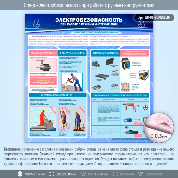 Стенд «Электробезопасность при работе с ручным инструментом» (EB-08-SUPERSLIM) в Обнинске купить