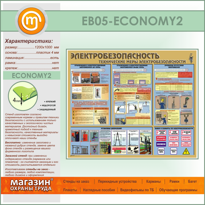 Стенд «Электробезопасность. Технические меры электробезопасности» (EB-05-ECONOMY2) в Обнинске купить