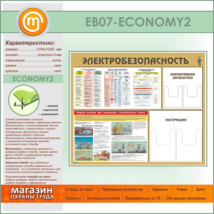 Стенд «Электробезопасность» с 4 объемными карманами (EB-07-ECONOMY2) в Обнинске купить