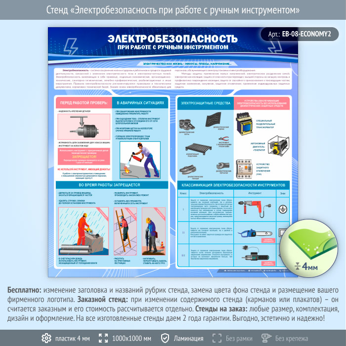 Стенд «Электробезопасность при работе с ручным инструментом» (EB-08-ECONOMY2) в Обнинске купить