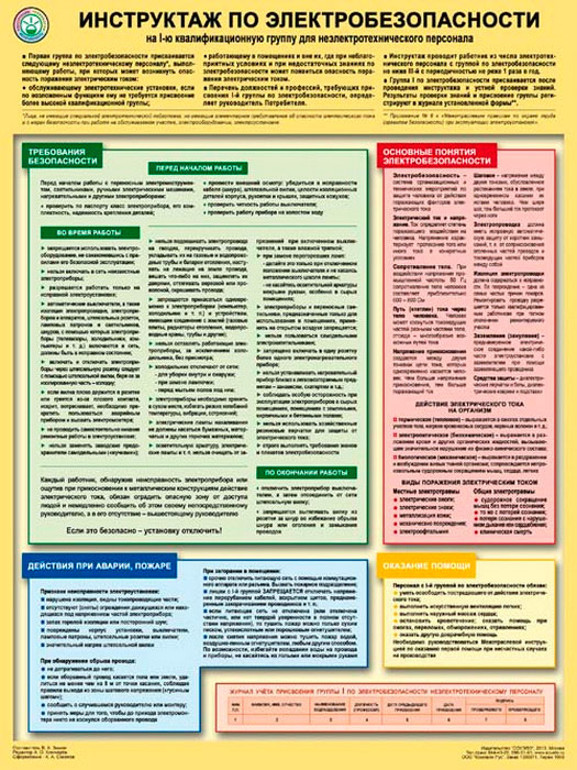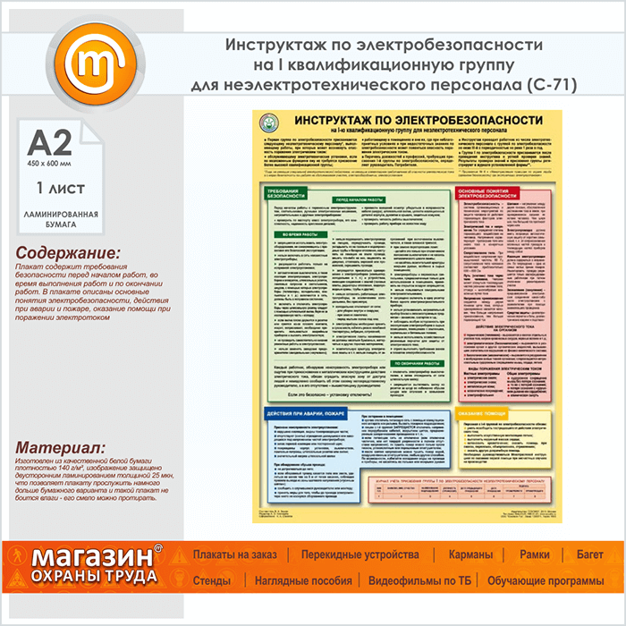 Плакат «Инструктаж по электробезопасности - на I квалификационную группу для неэлектротехнического персонала» (С-71, ламинированная бумага, А2, 1 лист) в Обнинске купить