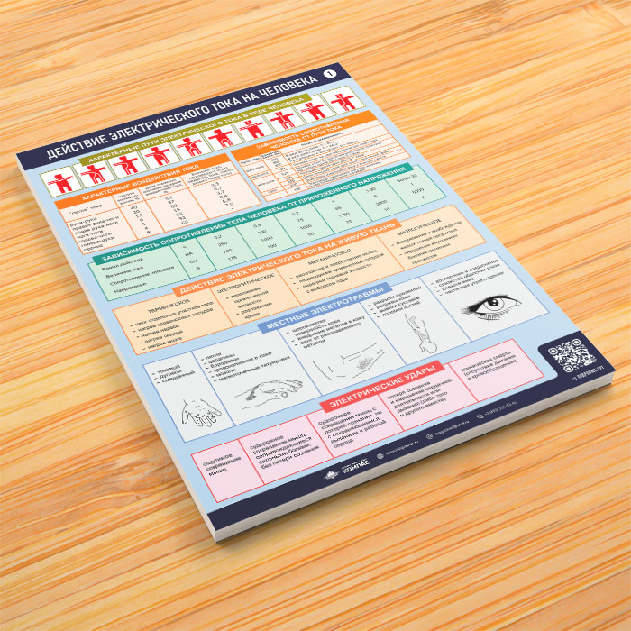 Плакаты «Действие электрического тока на человека» (М-04, ламинированная бумага, А2, 3 листа) в Обнинске купить