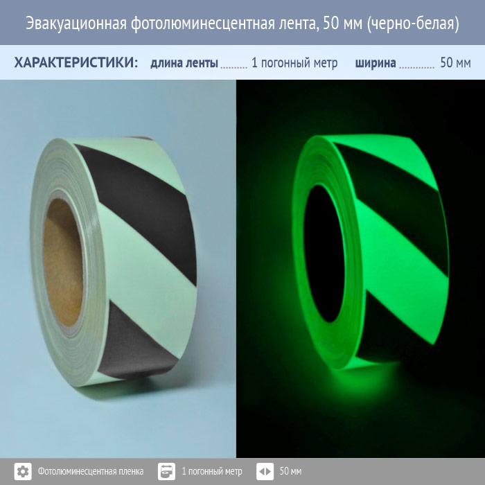 Эвакуационная фотолюминесцентная лента, 50 мм (черно-белая) в Обнинске купить
