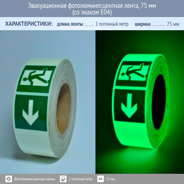Эвакуационная фотолюминесцентная лента, 75 мм (со знаком E04) в Обнинске купить