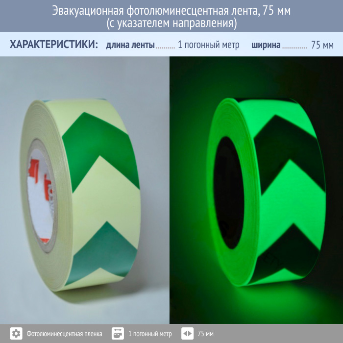 Эвакуационная фотолюминесцентная лента, 75 мм (с указателем направления) в Обнинске купить