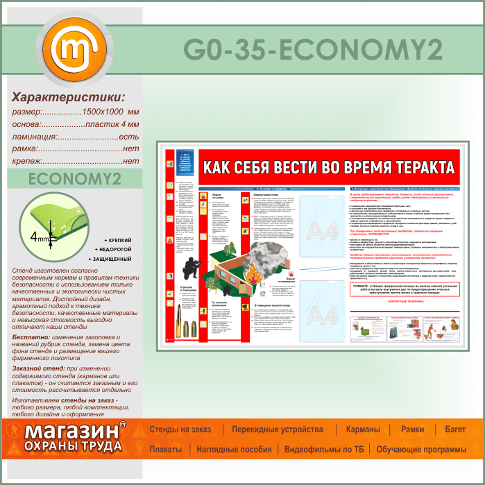 Стенд «Как себя вести во время теракта» c 2 карманами (GO-35-ECONOMY2) в Обнинске купить