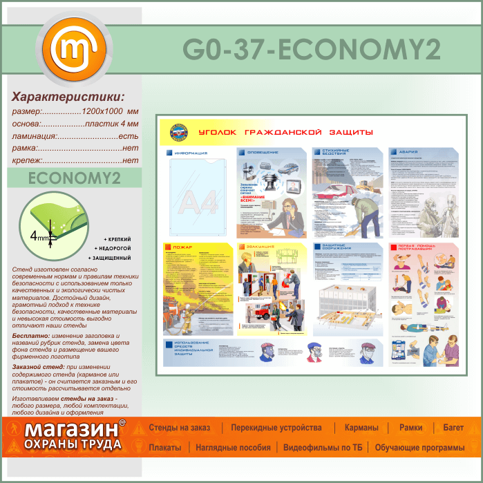 Стенд «Уголок гражданской защиты» с карманом (GO-37-ECONOMY2) в Обнинске купить