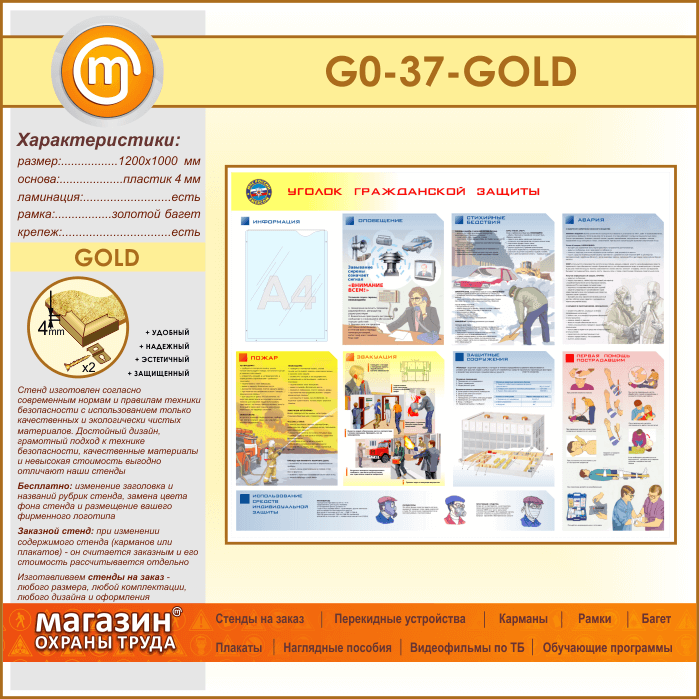 Стенд «Уголок гражданской защиты» с карманом (GO-37-GOLD) в Обнинске купить