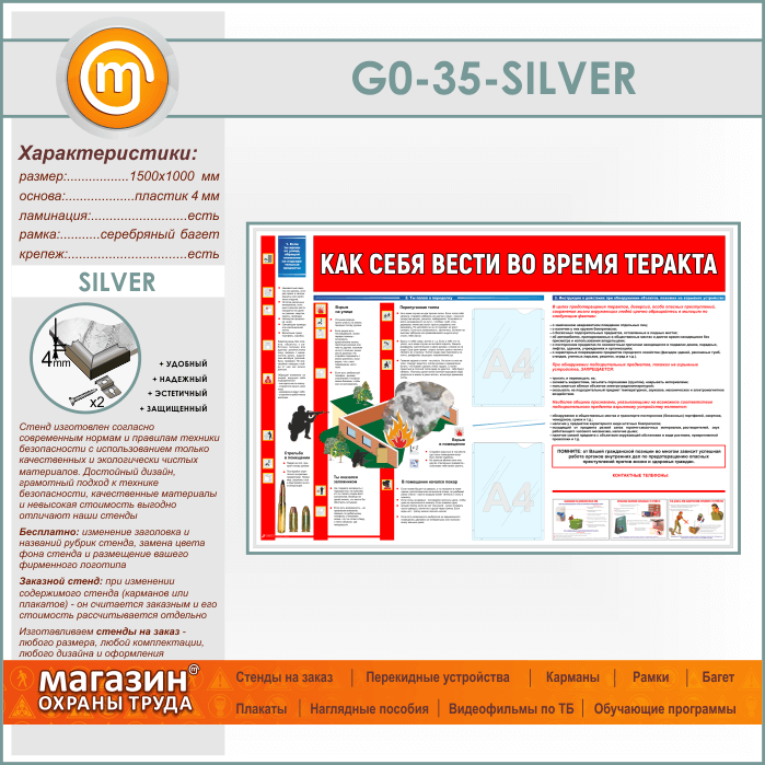 Стенд «Как себя вести во время теракта» c 2 карманами (GO-35-SILVER) в Обнинске купить