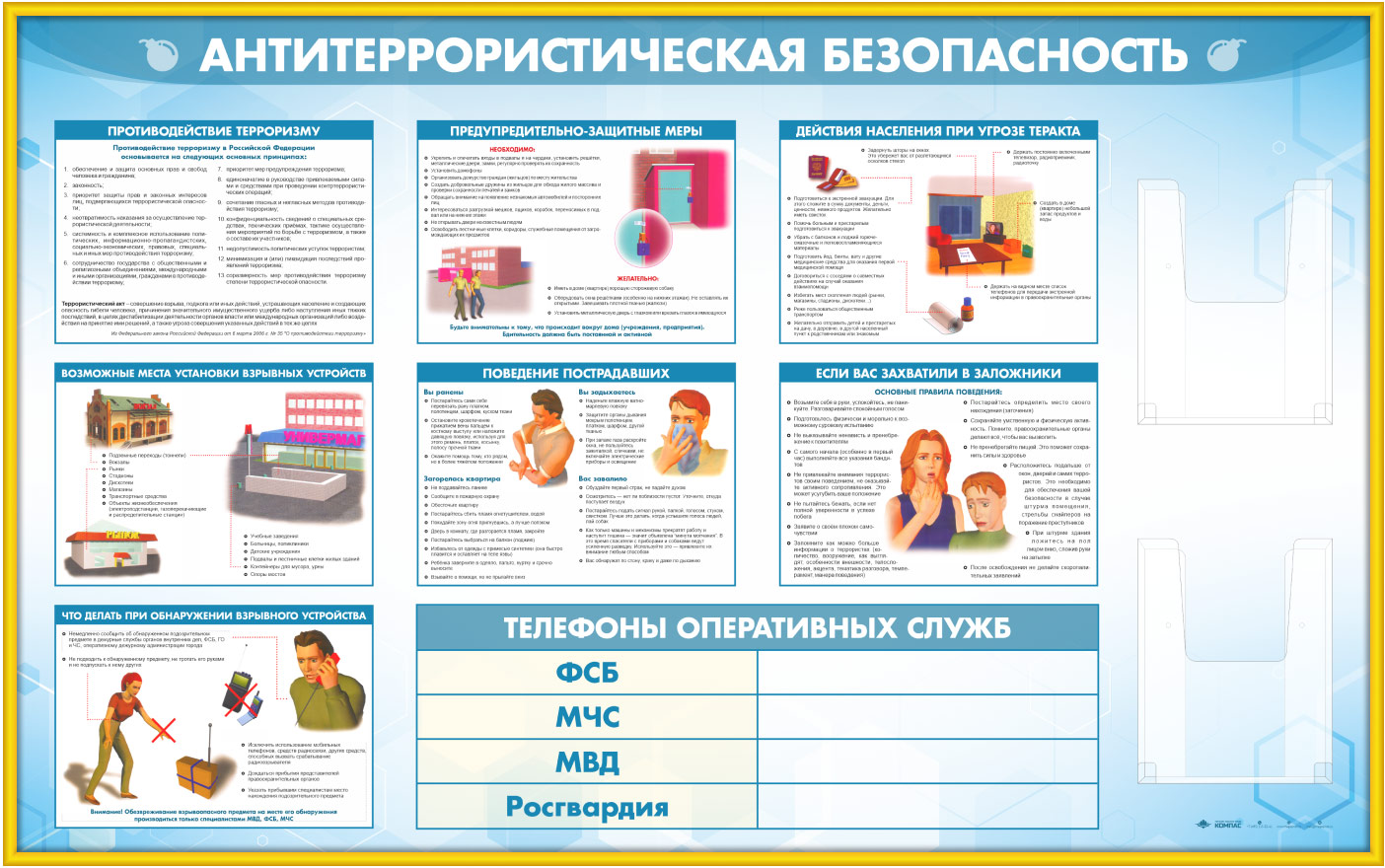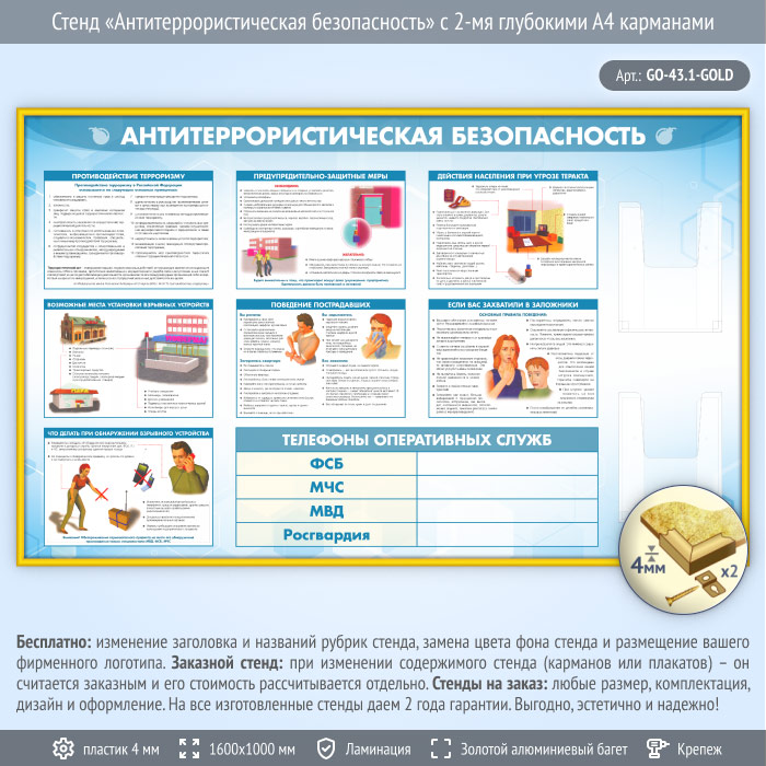 Стенд «Антитеррористическая безопасность» с 2-мя глубокими А4 карманами (GO-43.1-GOLD) в Обнинске купить