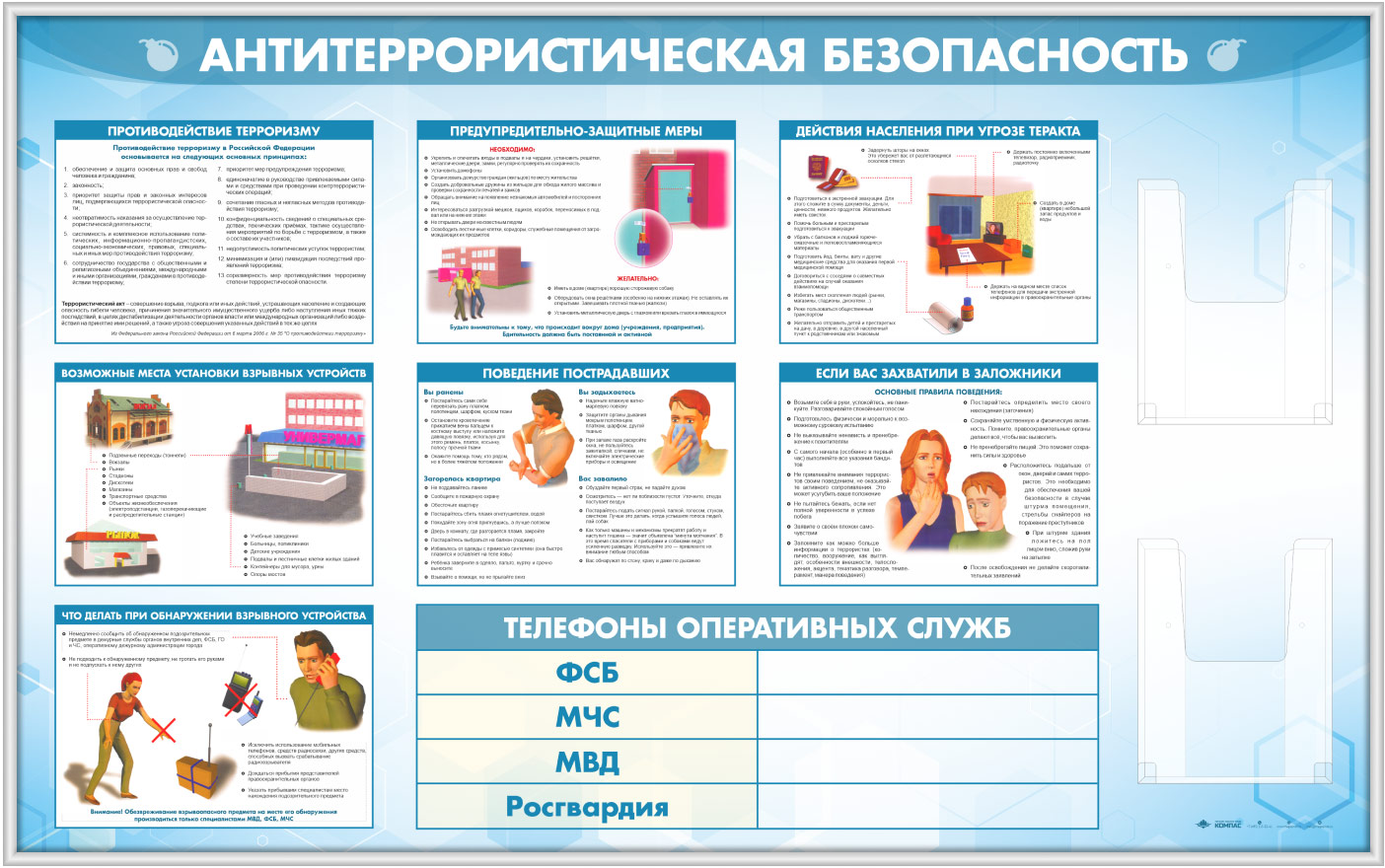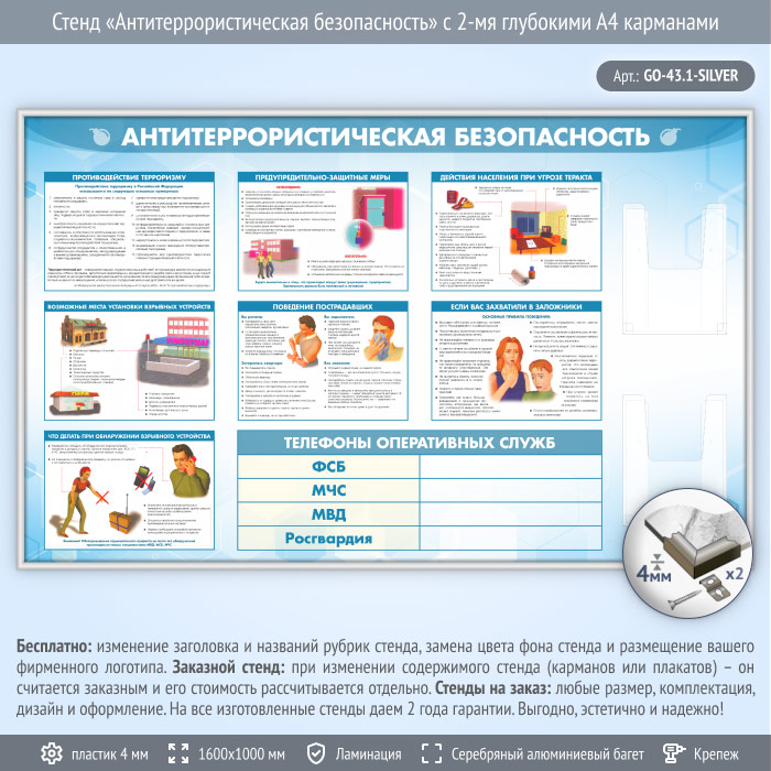 Стенд «Антитеррористическая безопасность» с 2-мя глубокими А4 карманами (GO-43.1-SILVER) в Обнинске купить