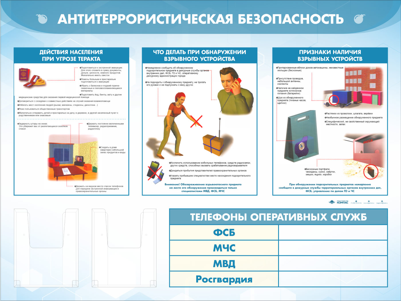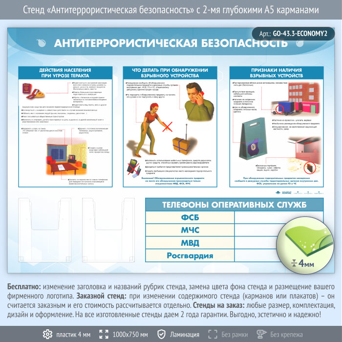 Стенд «Антитеррористическая безопасность» с 2-мя глубокими А5 карманами (GO-43.3-ECONOMY2) в Обнинске купить