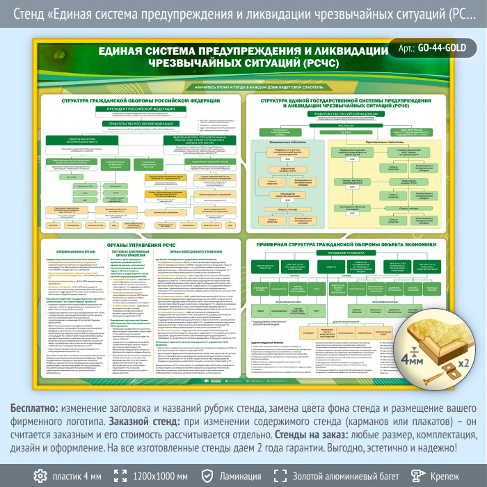 Стенд «Единая система предупреждения и ликвидации чрезвычайных ситуаций (РСЧС)» (GO-44-GOLD) в Обнинске купить