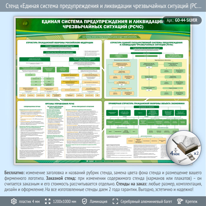 Стенд «Единая система предупреждения и ликвидации чрезвычайных ситуаций (РСЧС)» (GO-44-SILVER) в Обнинске купить