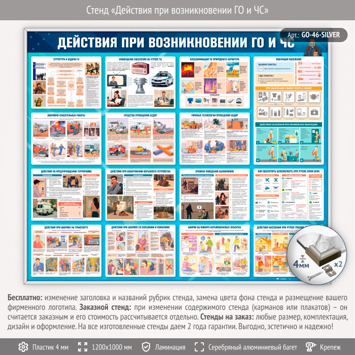 Стенд «Действия при возникновении ГО и ЧС» (GO-46-SILVER) в Обнинске купить