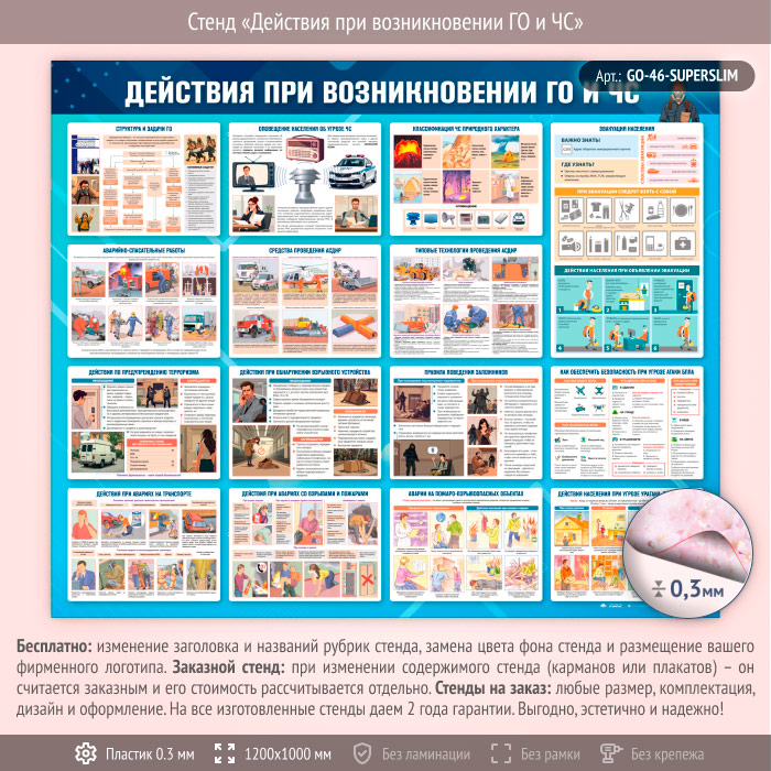 Стенд «Действия при возникновении ГО и ЧС» (GO-46-SUPERSLIM) в Обнинске купить