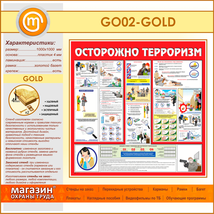 Стенд «Осторожно терроризм!» (GO-02-GOLD) в Обнинске купить
