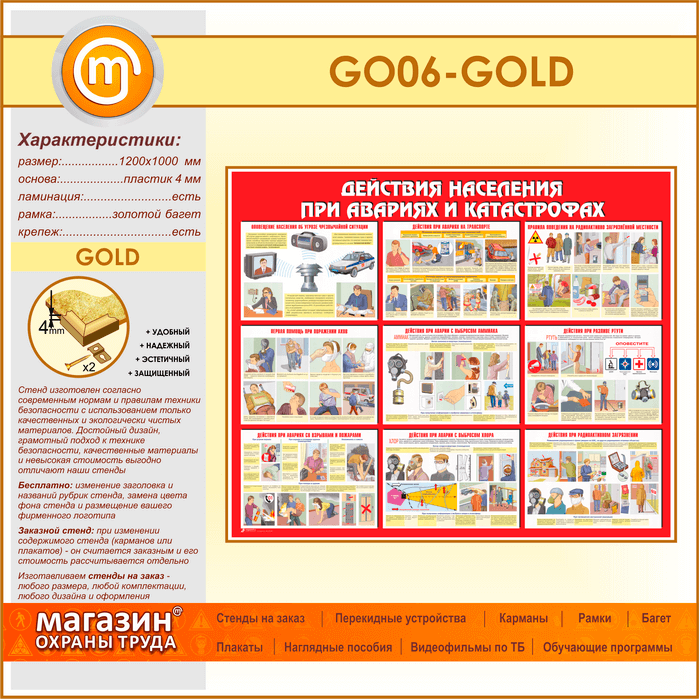 Стенд «Действия населения при авариях и катастрофах» (GO-06-GOLD) в Обнинске купить