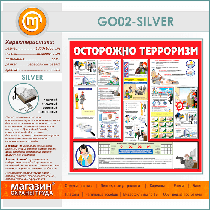 Стенд «Осторожно терроризм!» (GO-02-SILVER) в Обнинске купить