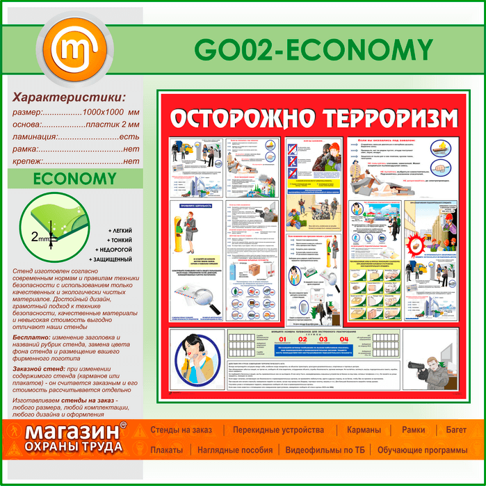 Стенд «Осторожно терроризм!» (GO-02-ECONOMY) в Обнинске купить