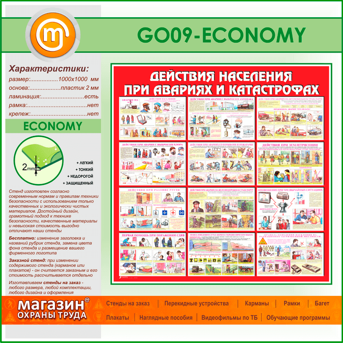 Стенд «Действия населения при авариях и катастрофах» (GO-09-ECONOMY) в Обнинске купить