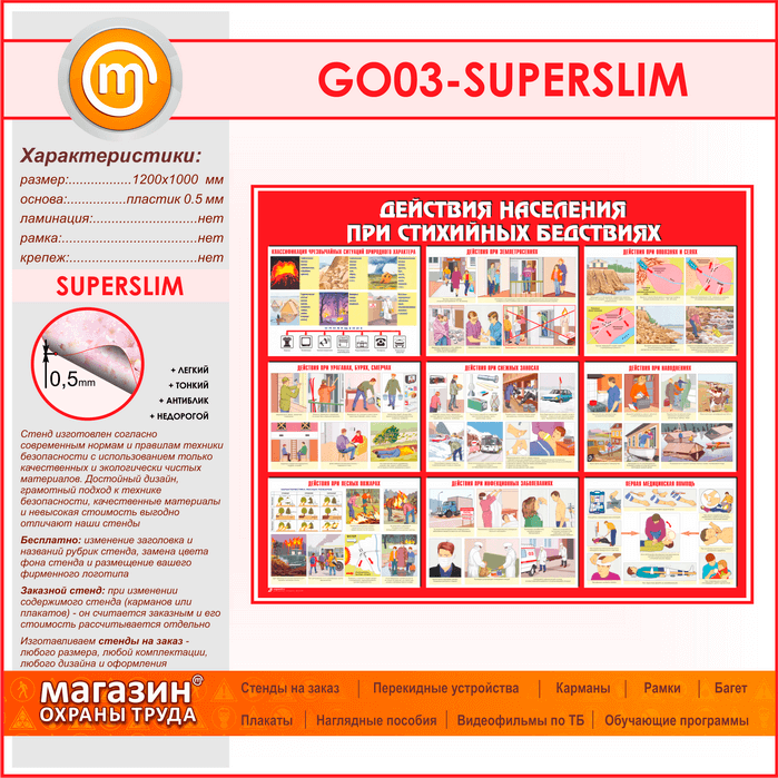 Стенд «Действия населения при стихийных бедствиях» (GO-03-SUPERSLIM) в Обнинске купить
