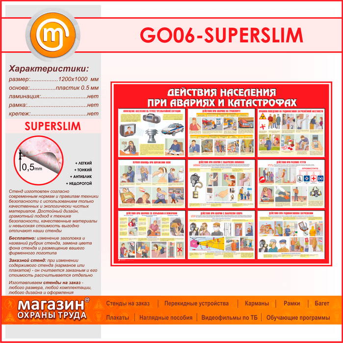 Стенд «Действия населения при авариях и катастрофах» (GO-06-SUPERSLIM) в Обнинске купить