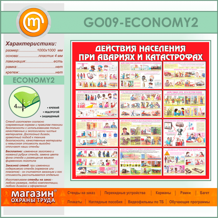 Стенд «Действия населения при авариях и катастрофах» (GO-09-ECONOMY2) в Обнинске купить