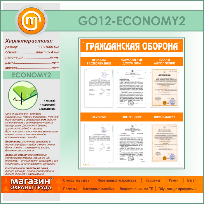 Стенд «Гражданская оборона» с 6 плоскими карманами (GO-12-ECONOMY2) в Обнинске купить