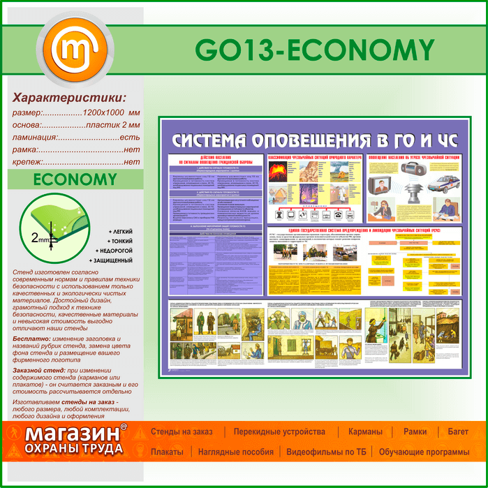 Стенд «Система оповещения в ГО и ЧС» (GO-13-ECONOMY) в Обнинске купить