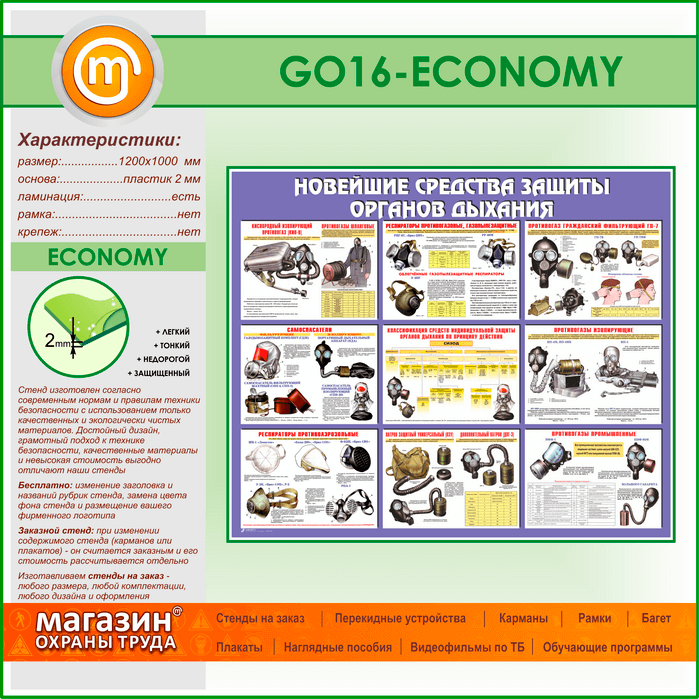 Стенд «Новейшие средства защиты органов дыхания» (GO-16-ECONOMY) в Обнинске купить