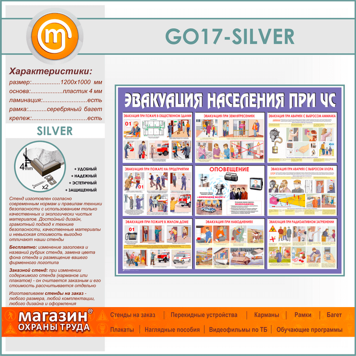 Стенд «Эвакуация населения при ЧС» (GO-17-SILVER) в Обнинске купить