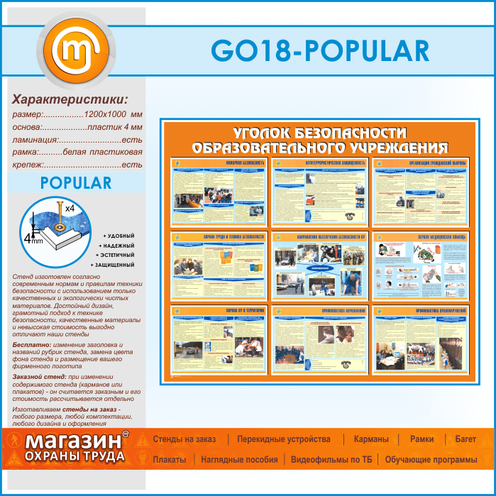 Стенд «Уголок безопасности образовательного учреждения» (GO-18-POPULAR) в Обнинске купить