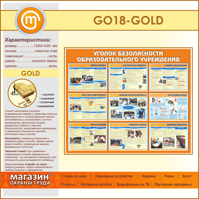 Стенд «Уголок безопасности образовательного учреждения» (GO-18-GOLD) в Обнинске купить