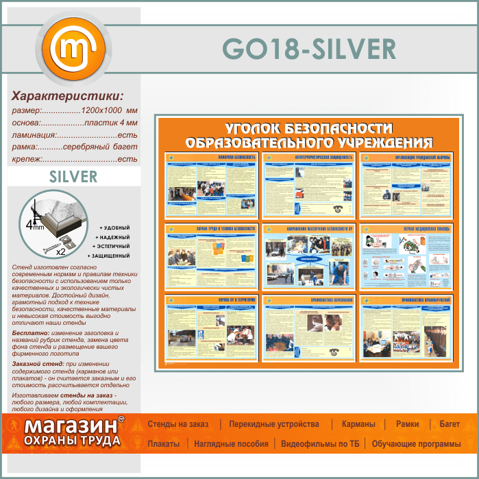 Стенд «Уголок безопасности образовательного учреждения» (GO-18-SILVER) в Обнинске купить