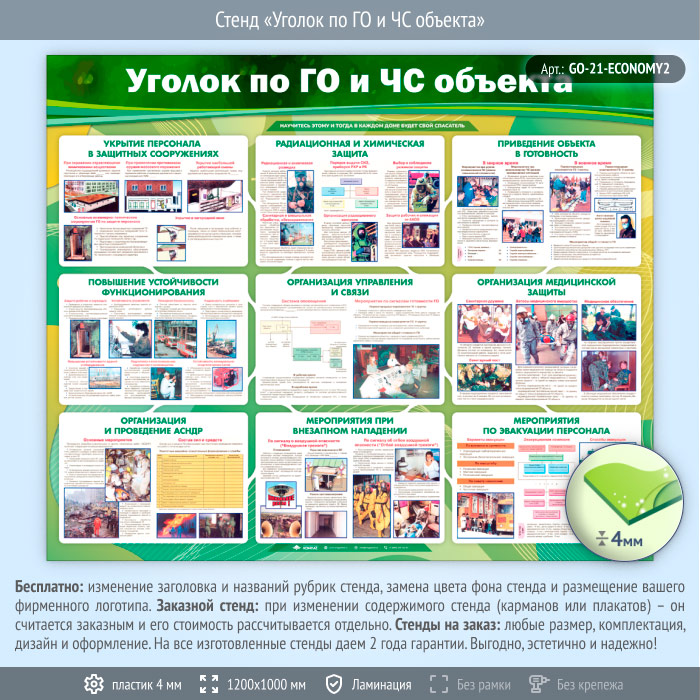 Стенд «Уголок по ГО и ЧС объекта» (GO-21-ECONOMY2) в Обнинске купить