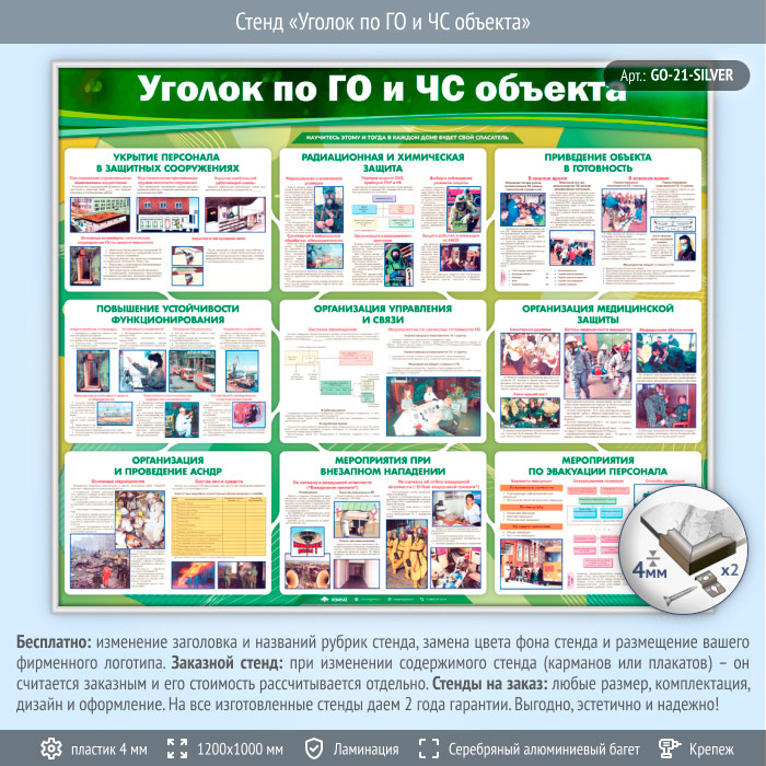 Стенд «Уголок по ГО и ЧС объекта» (GO-21-SILVER) в Обнинске купить