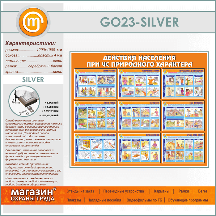 Стенд «Действия населения при ЧС природного характера» (GO-23-SILVER) в Обнинске купить