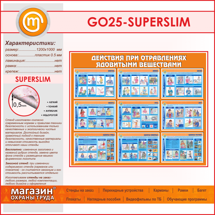 Стенд «Действия при отравлении ядовитыми веществами» (GO-25-SUPERSLIM) в Обнинске купить