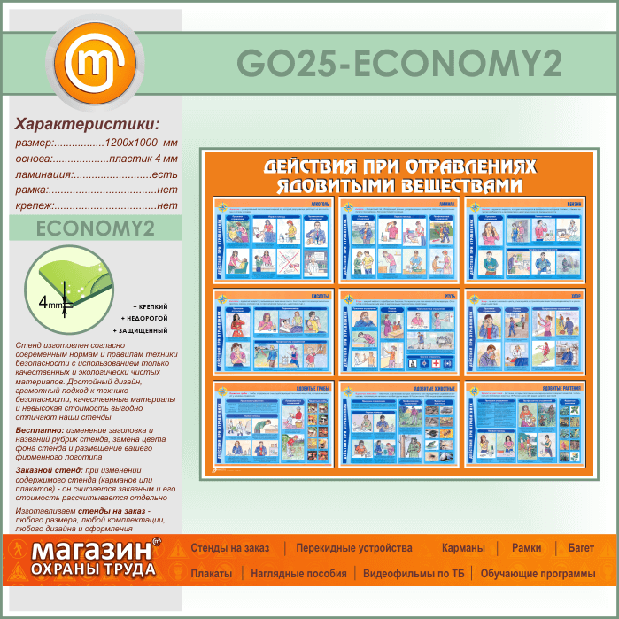 Стенд «Действия при отравлении ядовитыми веществами» (GO-25-ECONOMY2) в Обнинске купить