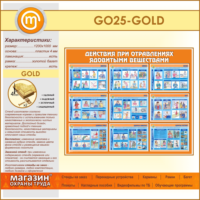 Стенд «Действия при отравлении ядовитыми веществами» (GO-25-GOLD) в Обнинске купить
