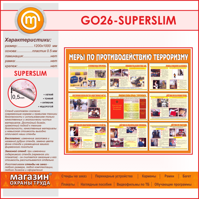 Стенд «Меры по противодействию терроризму» (GO-26-SUPERSLIM) в Обнинске купить