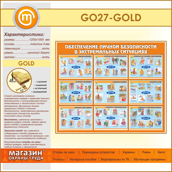 Стенд «Обеспечение личной безопасности в экстремальных ситуациях» (GO-27-GOLD) в Обнинске купить