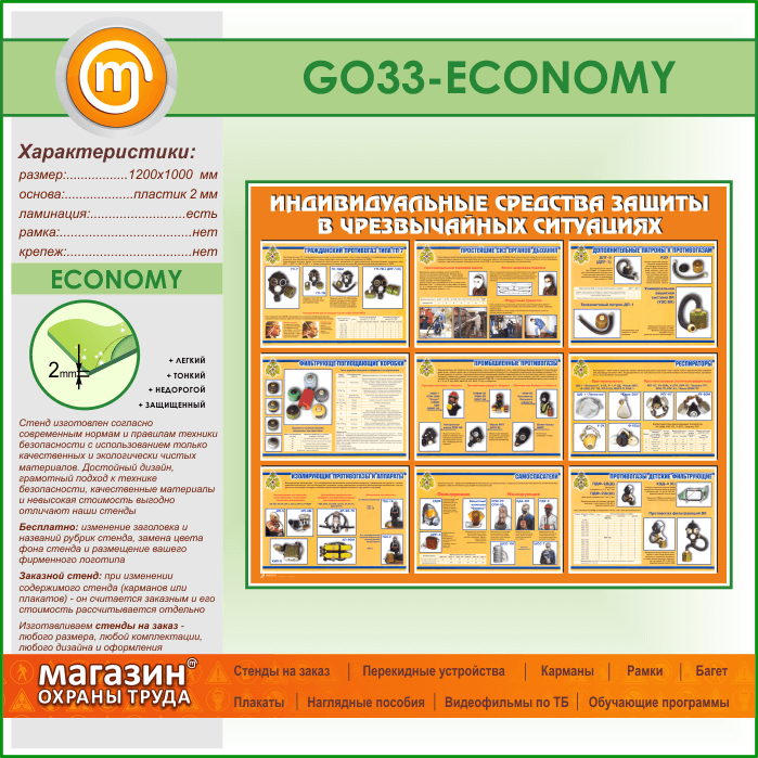 Стенд «Индивидуальные средства защиты в чрезвычайных ситуациях» (GO-33-ECONOMY) в Обнинске купить