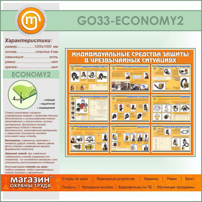 Стенд «Индивидуальные средства защиты в чрезвычайных ситуациях» (GO-33-ECONOMY2) в Обнинске купить