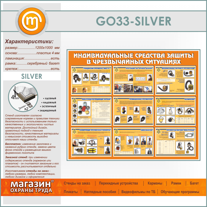 Стенд «Индивидуальные средства защиты в чрезвычайных ситуациях» (GO-33-SILVER) в Обнинске купить