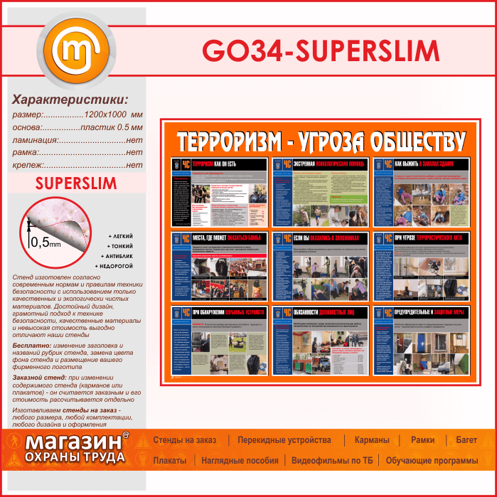 Стенд «Терроризм - угроза обществу» (GO-34-SUPERSLIM) в Обнинске купить