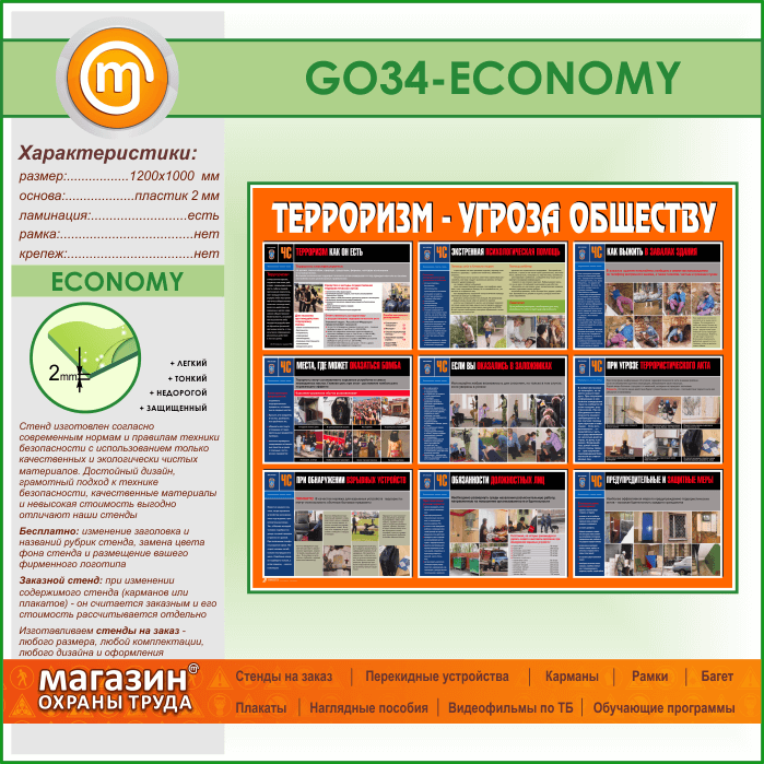Стенд «Терроризм - угроза обществу» (GO-34-ECONOMY) в Обнинске купить